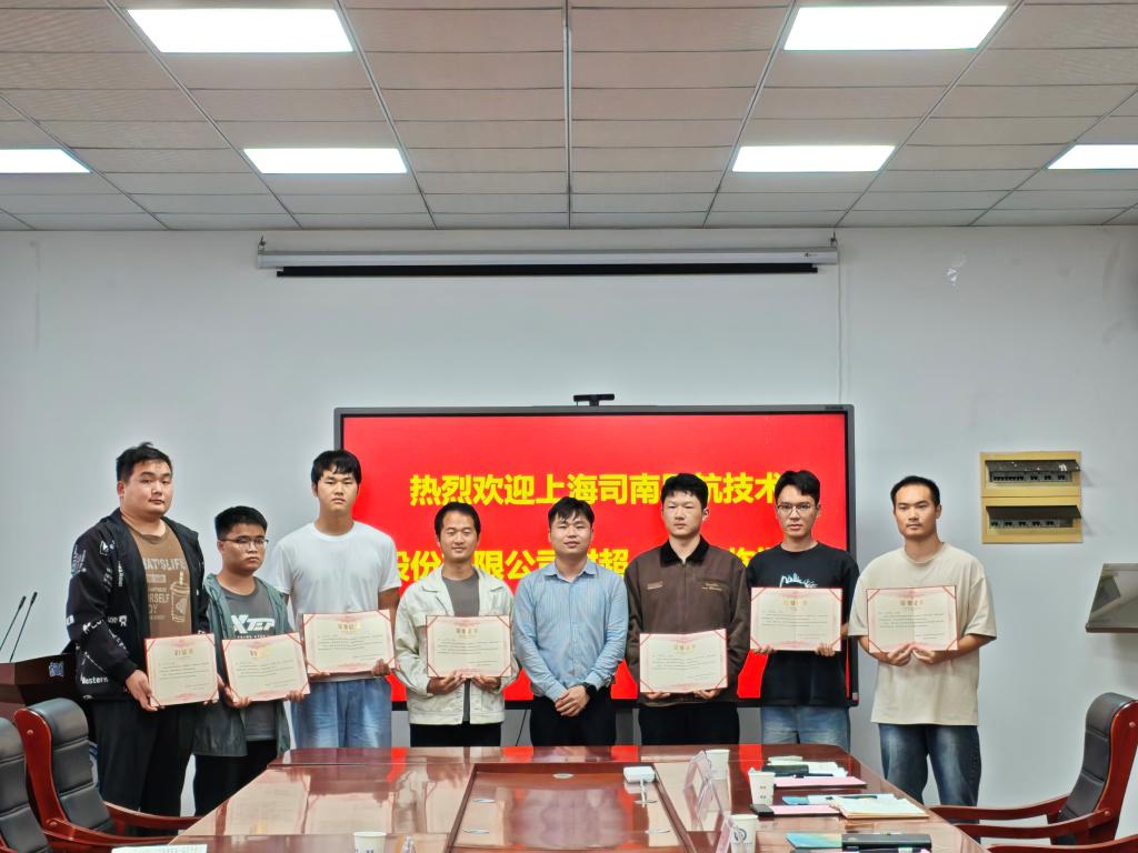 司南导航公司还向在项目中表现优异的7名学生颁发了项目荣誉证书。实习学生代表刘治骏分享了实习期间的成长与收获,对学院和公司提供的宝贵实践机会表示感谢。