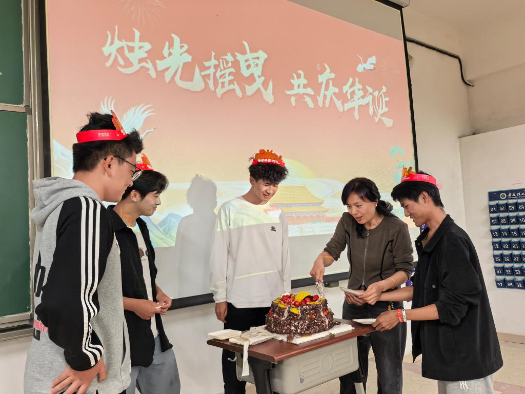 "集体生日"环节,学院领导与辅导员共同为入学以来至国庆假期过生日的同学们举办了一场温馨的集体生日会。在烛光摇曳中,师生共同分享生日蛋糕,齐声唱响《生日快乐》和《歌唱祖国》。