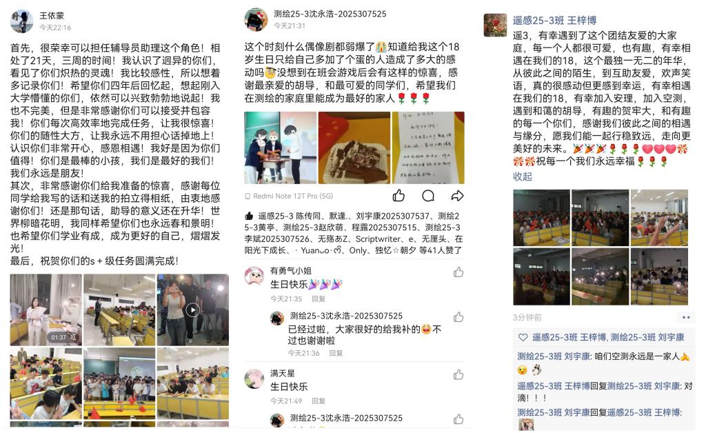 活动结束后,新生以及辅导员助理纷纷在社交媒体上分享自己的感受。