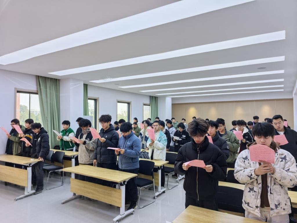 活动伊始,辅导员老师作开场动员。他在致辞中阐述了国家宪法日的设立背景与深远意义,指出宪法是国家的根本法,是治国安邦的总章程。他强调,在高校开展宪法学习,是引导青年学生树立正确价值观、培养法治思维的重要途径,鼓励同学们将宪法精神融入日常学习生活,自觉做社会主义法治的忠实崇尚者、自觉遵守者和坚定捍卫者。
