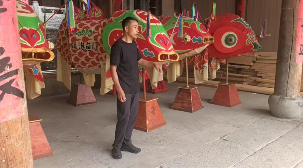 聚焦非遗鱼灯,是本次调研的核心。 非遗传承人、鱼灯队队长郑东姣在村祠堂前为团队深度解读了瞻淇鱼灯丰富的文化内涵和灵魂。