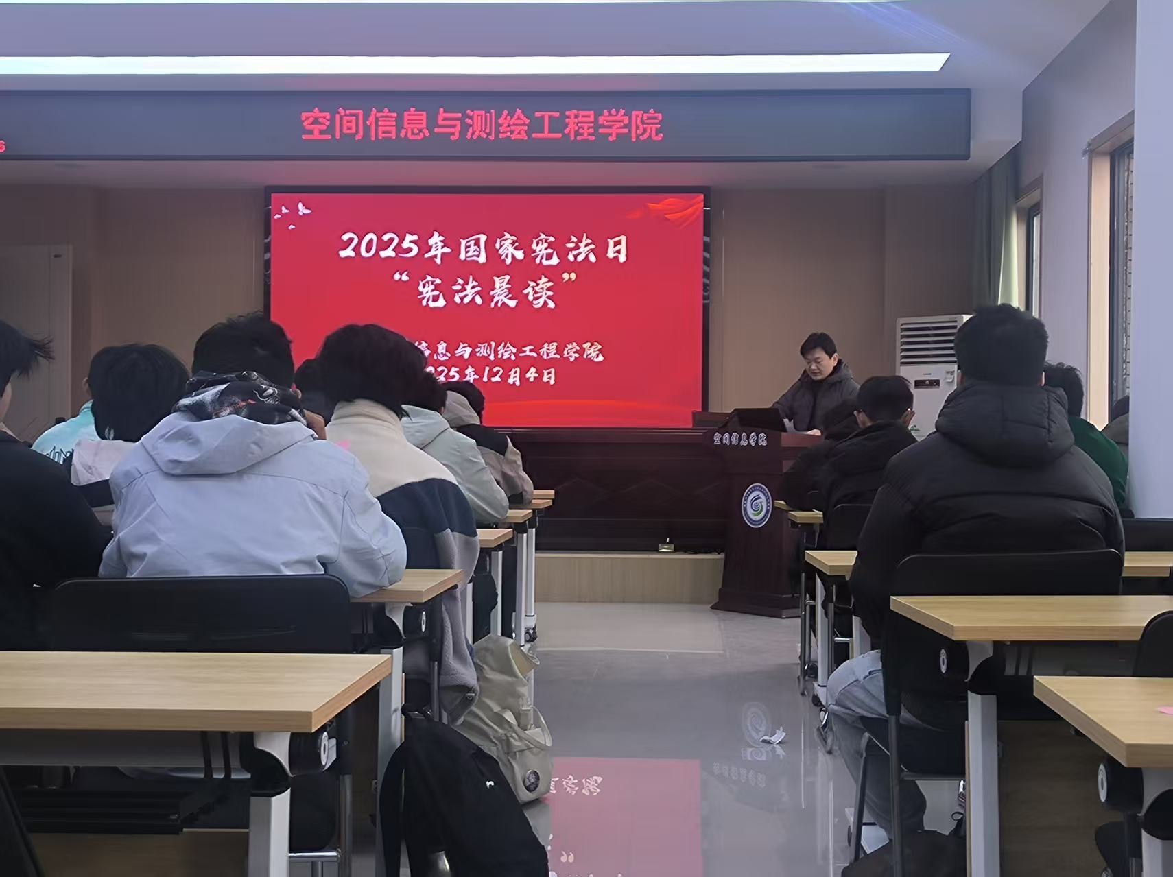 活动伊始,辅导员老师作开场动员。他在致辞中阐述了国家宪法日的设立背景与深远意义,指出宪法是国家的根本法,是治国安邦的总章程。他强调,在高校开展宪法学习,是引导青年学生树立正确价值观、培养法治思维的重要途径,鼓励同学们将宪法精神融入日常学习生活,自觉做社会主义法治的忠实崇尚者、自觉遵守者和坚定捍卫者。
