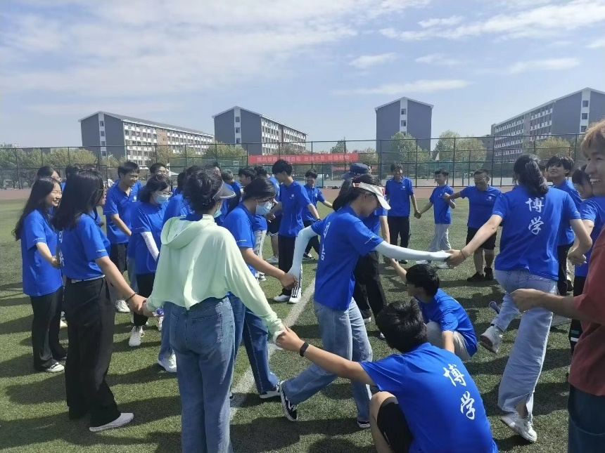 本次素质拓展活动为期一天,共设计了12项丰富多样的团队素质拓展游戏。通过“热身操”“松鼠与大树”等游戏,同学们逐渐消除了彼此之间的距离感和陌生感;“珠行千里”“摸石头过河”使大家增强了团体意识,体会到了团队配合的重要性;而在“解开千千结”“大海捞针”“链接加速”等游戏中,同学们的组织领导能力和团队协作能力得到了进一步提升。在整个活动中,同学们之间相互协作、挑战极限,依靠团队的力量和智慧成功地完成了各项任务。